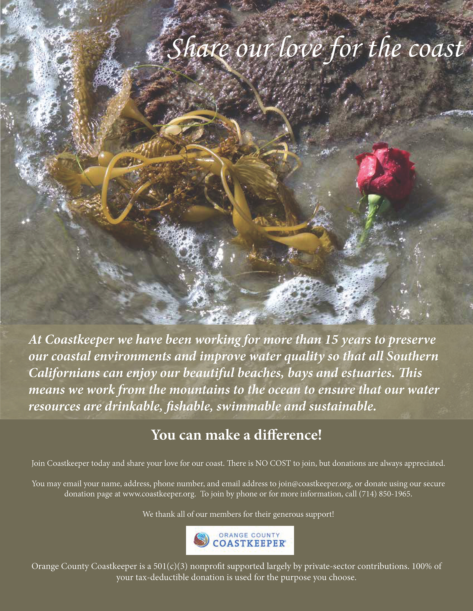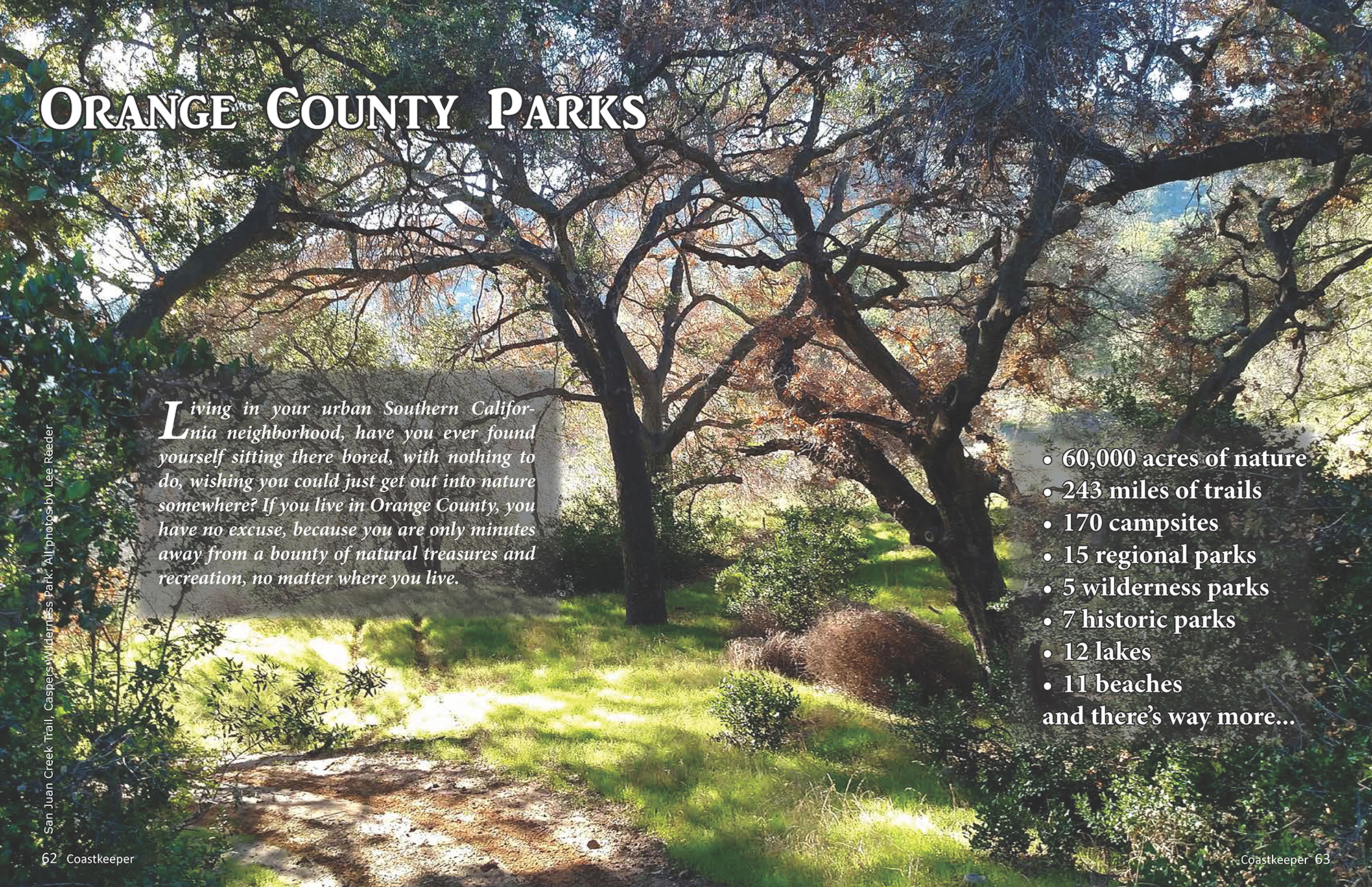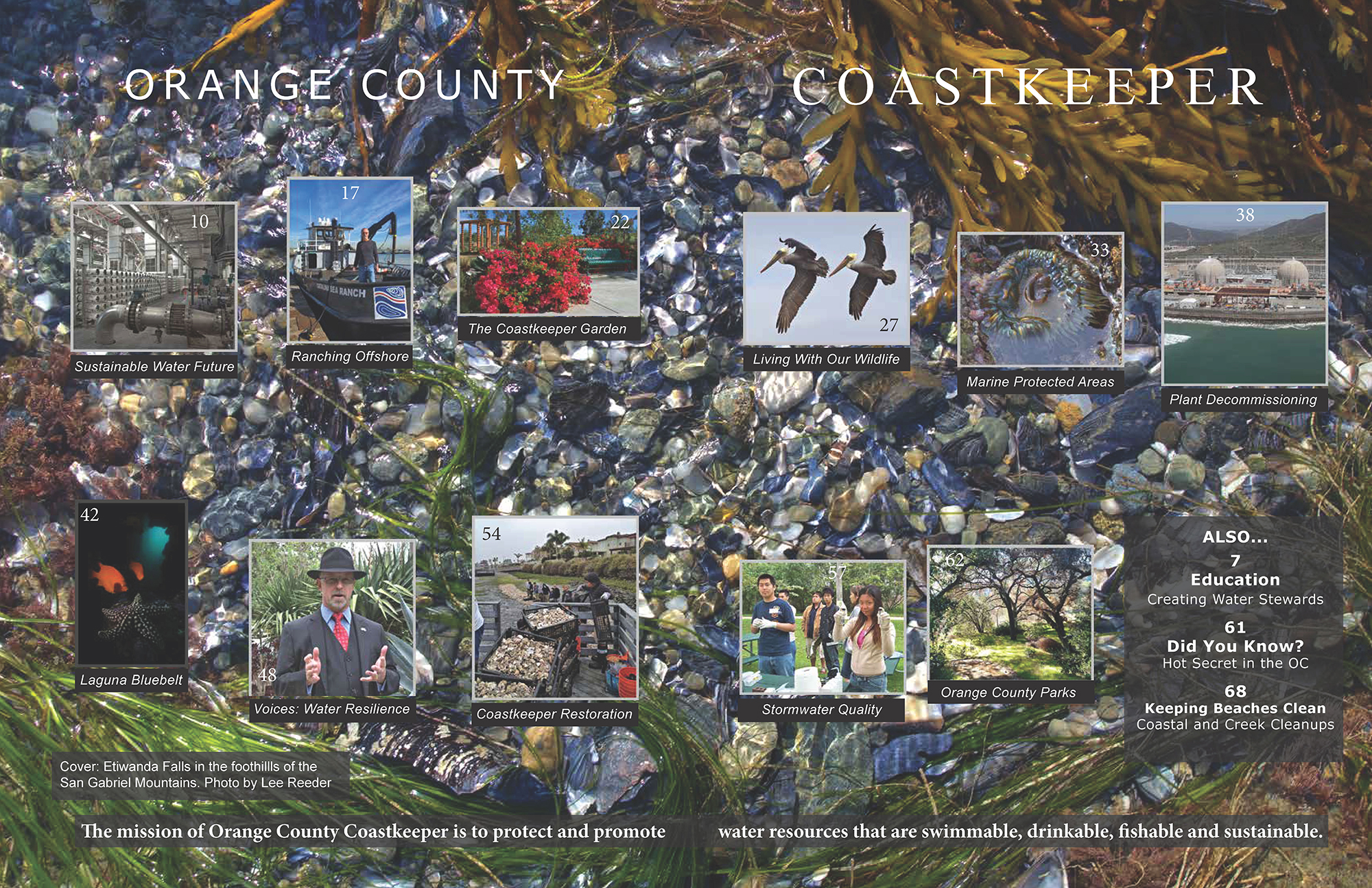 The portfolio gallery below highlights Orange County Coastkeeper Magazine: a high-quality, 72-page promotional publication highlighting the accomplishments, philosophy and future direction for a non-profit environmental organization. Orange County Coastkeeper is a respected environmental organization that protects water quality throughout the 26,000 square miles of the Santa Ana River Watershed—the largest watershed in Southern California. As Executive Editor & Creative Director, I performed a majority of the writing, all interviewing, all editorial coordination, and much of the photography for the publication. I designed it, laid it out in InDesign, & did all of the prepress work. This magazine provides an example of the breadth of my abilities. To view some of the layouts click, on the gallery below.
